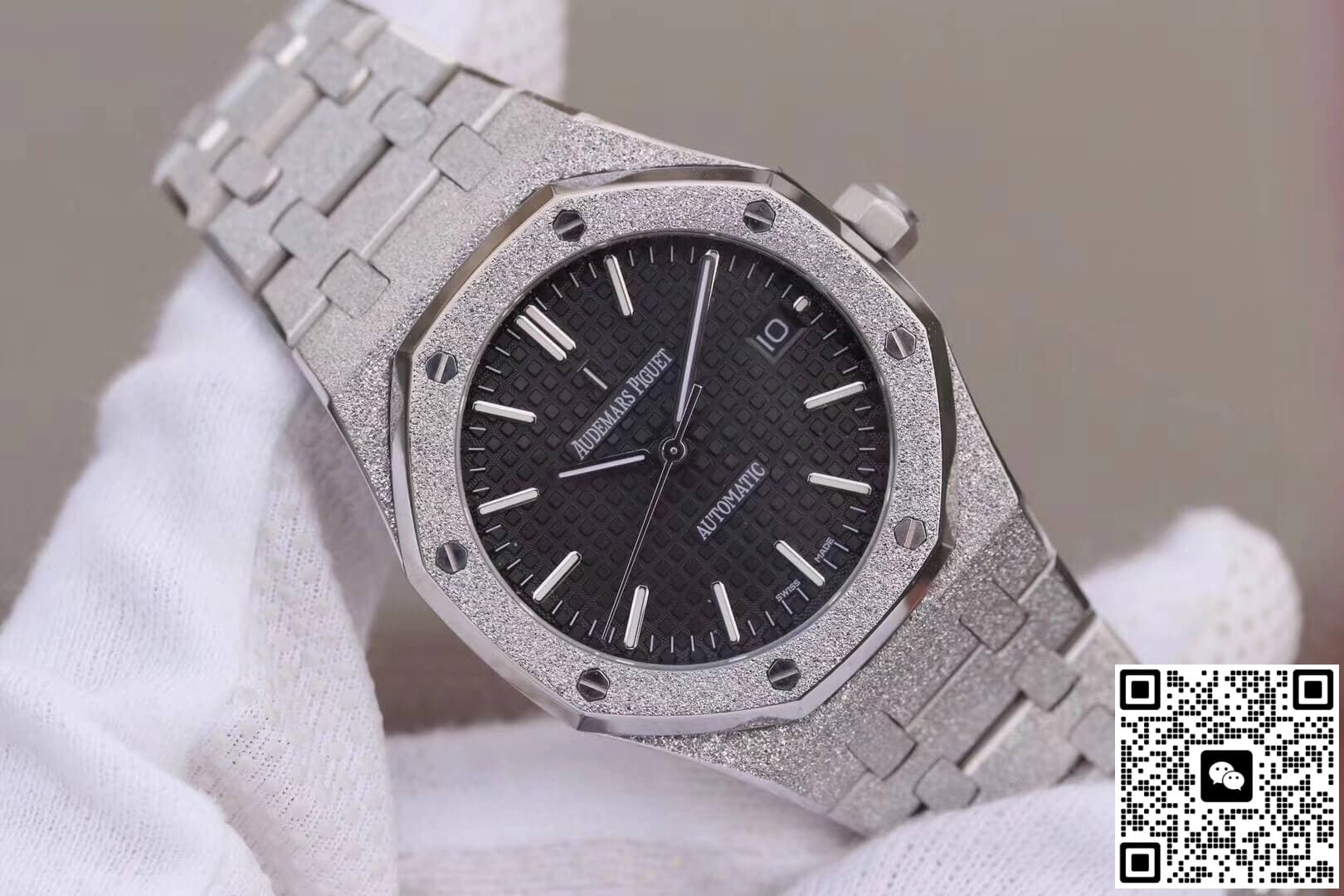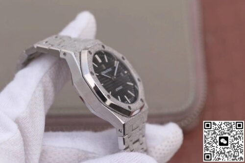 Audemars Piguet Royal Oak 15454BC.GG.1259BC.01 JH Factory Black Dial JF Replica, almost indistinguishable from the original, is made with advanced technology and exquisite workmanship, whether it is the hour markers on the dial, the shape of the hands, or the The buckle design reproduces every detail of the genuine watch in detail. It is guaranteed to be consistent with the genuine watch in appearance and function. Whether it is the well-known Rolex, Patek Philippe, Audemars Piguet, Omega, etc., there are top replica versions to choose from. In addition to the appearance, the internal movement of the top replica watch is also exquisite. They feature high-precision and reliable Swiss movements that ensure the accurate operation of the watch. More importantly, the movements of these replica watches are finely adjusted and run-in by professional craftsmen, ensuring the accuracy and stability of time.