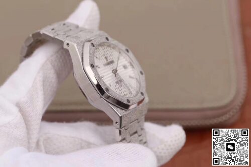 Audemars Piguet Royal Oak 15454BC.GG.1259BC.01 JH Factory Silver Strap JF Replica, almost indistinguishable from the original, is made with advanced technology and exquisite workmanship, whether it is the hour markers on the dial, the shape of the hands, or the The buckle design reproduces every detail of the genuine watch in detail. It is guaranteed to be consistent with the genuine watch in appearance and function. Whether it is the well-known Rolex, Patek Philippe, Audemars Piguet, Omega, etc., there are top replica versions to choose from. In addition to the appearance, the internal movement of the top replica watch is also exquisite. They feature high-precision and reliable Swiss movements that ensure the accurate operation of the watch. More importantly, the movements of these replica watches are finely adjusted and run-in by professional craftsmen, ensuring the accuracy and stability of time.