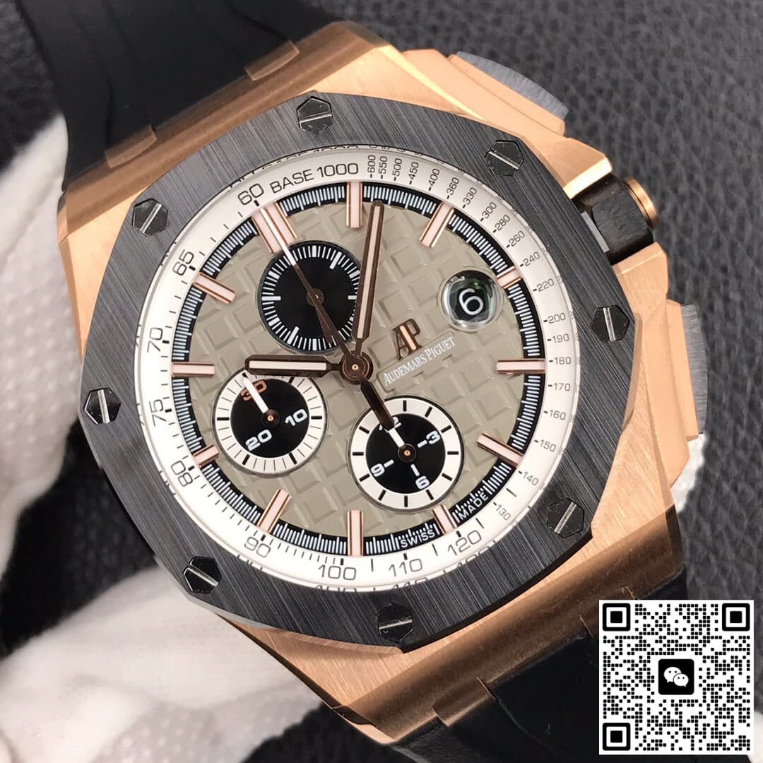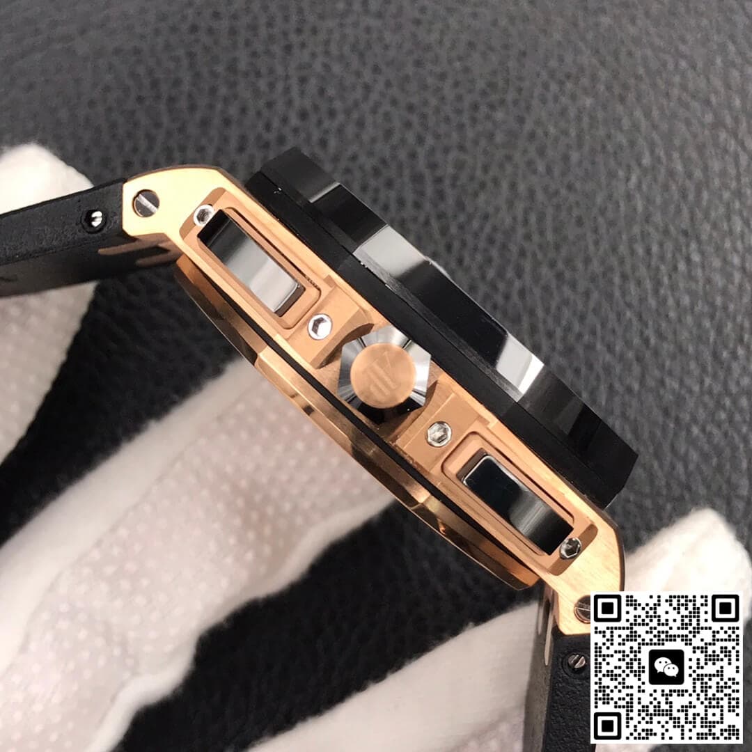 Audemars Piguet Royal Oak Offshore 26416RO.OO.A002CA.01 JF Factory V2 Black Strap JF Replica, almost indistinguishable from the original, is made with advanced technology and exquisite workmanship, whether it is the hour markers on the dial, the shape of the hands, or the The buckle design reproduces every detail of the genuine watch in detail. It is guaranteed to be consistent with the genuine watch in appearance and function. Whether it is the well-known Rolex, Patek Philippe, Audemars Piguet, Omega, etc., there are top replica versions to choose from. In addition to the appearance, the internal movement of the top replica watch is also exquisite. They feature high-precision and reliable Swiss movements that ensure the accurate operation of the watch. More importantly, the movements of these replica watches are finely adjusted and run-in by professional craftsmen, ensuring the accuracy and stability of time.