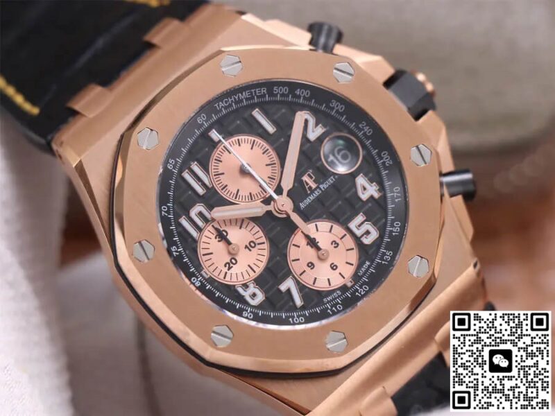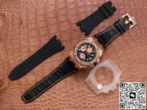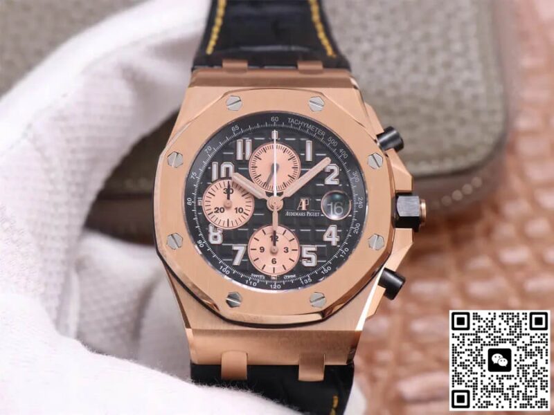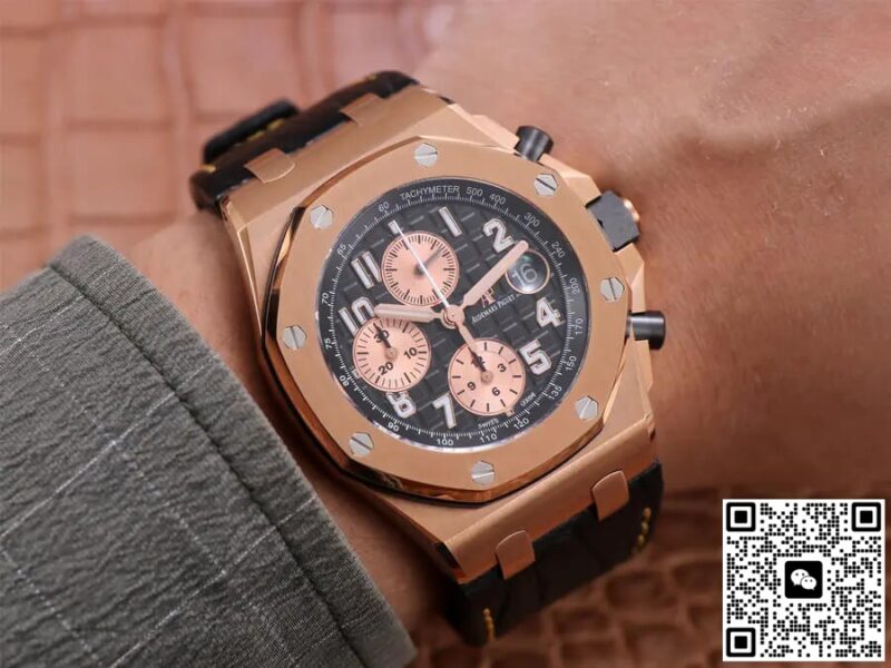 Replica watches are a product of the normal market economy and a luxury with high quality and low price. It was born to satisfy everyone’s pursuit of high quality and low price, and to bring people the quality and charm of genuine watches. If you are looking for an affordable and high quality replica watch, then this Audemars Piguet Royal Oak Offshore 26470OR JF Factory Leather Strap JF Replica Watches is a very good choice, almost the same as the genuine watch There is no difference, not only beautiful in appearance, but also excellent in performance. Whether it is fashion pursuit or business needs, it is a wise choice.