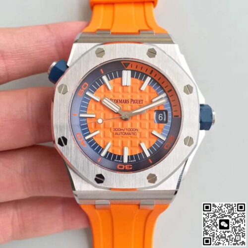 Audemars Piguet Royal Oak Offshore Diver 15710ST.OO.A070CA.01 JF Factory V3 Orange Dial JF Replica, almost indistinguishable from the original, is made with advanced technology and exquisite workmanship, whether it is the hour markers on the dial, the shape of the hands, or the The buckle design reproduces every detail of the genuine watch in detail. It is guaranteed to be consistent with the genuine watch in appearance and function. Whether it is the well-known Rolex, Patek Philippe, Audemars Piguet, Omega, etc., there are top replica versions to choose from. In addition to the appearance, the internal movement of the top replica watch is also exquisite. They feature high-precision and reliable Swiss movements that ensure the accurate operation of the watch. More importantly, the movements of these replica watches are finely adjusted and run-in by professional craftsmen, ensuring the accuracy and stability of time.