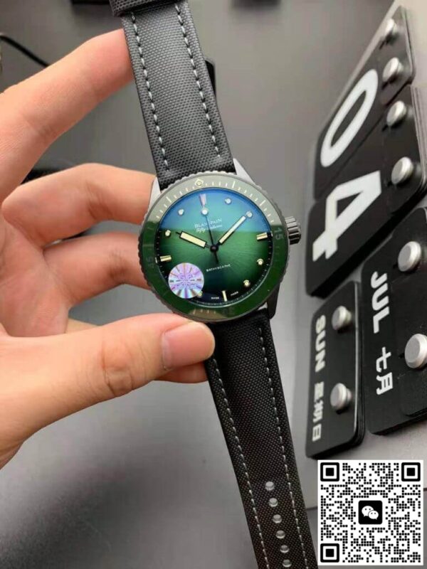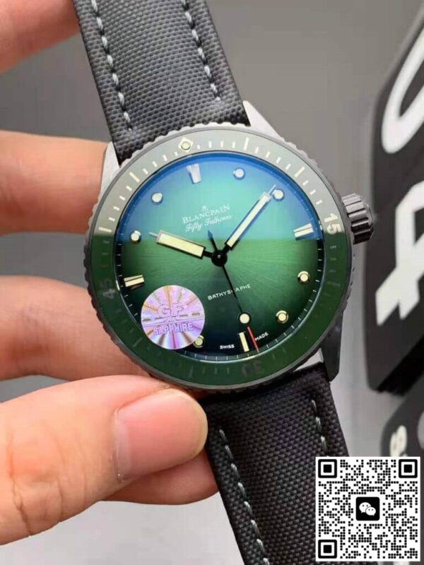 Blancpain Fifty Fathoms Bathyscaphe Mokkarran 5005 0153 NABA GF Factory Green Dial JF Replica, almost indistinguishable from the original, is made with advanced technology and exquisite workmanship, whether it is the hour markers on the dial, the shape of the hands, or the The buckle design reproduces every detail of the genuine watch in detail. It is guaranteed to be consistent with the genuine watch in appearance and function. Whether it is the well-known Rolex, Patek Philippe, Audemars Piguet, Omega, etc., there are top replica versions to choose from. In addition to the appearance, the internal movement of the top replica watch is also exquisite. They feature high-precision and reliable Swiss movements that ensure the accurate operation of the watch. More importantly, the movements of these replica watches are finely adjusted and run-in by professional craftsmen, ensuring the accuracy and stability of time.