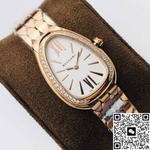Replica watches are a product of the normal market economy and a luxury with high quality and low price. It was born to satisfy everyone’s pursuit of high quality and low price, and to bring people the quality and charm of genuine watches. If you are looking for an affordable and high quality replica watch, then this Bvlgari Serpenti 103146 BV Factory Silver Diamond-Set Bezel JF Replica Watches is a very good choice, almost the same as the genuine watch There is no difference, not only beautiful in appearance, but also excellent in performance. Whether it is fashion pursuit or business needs, it is a wise choice.