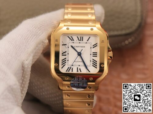 Cartier De Santos WSSA0010 BV Factory White Dial JF Replica, almost indistinguishable from the original, is made with advanced technology and exquisite workmanship, whether it is the hour markers on the dial, the shape of the hands, or the The buckle design reproduces every detail of the genuine watch in detail. It is guaranteed to be consistent with the genuine watch in appearance and function. Whether it is the well-known Rolex, Patek Philippe, Audemars Piguet, Omega, etc., there are top replica versions to choose from. In addition to the appearance, the internal movement of the top replica watch is also exquisite. They feature high-precision and reliable Swiss movements that ensure the accurate operation of the watch. More importantly, the movements of these replica watches are finely adjusted and run-in by professional craftsmen, ensuring the accuracy and stability of time.