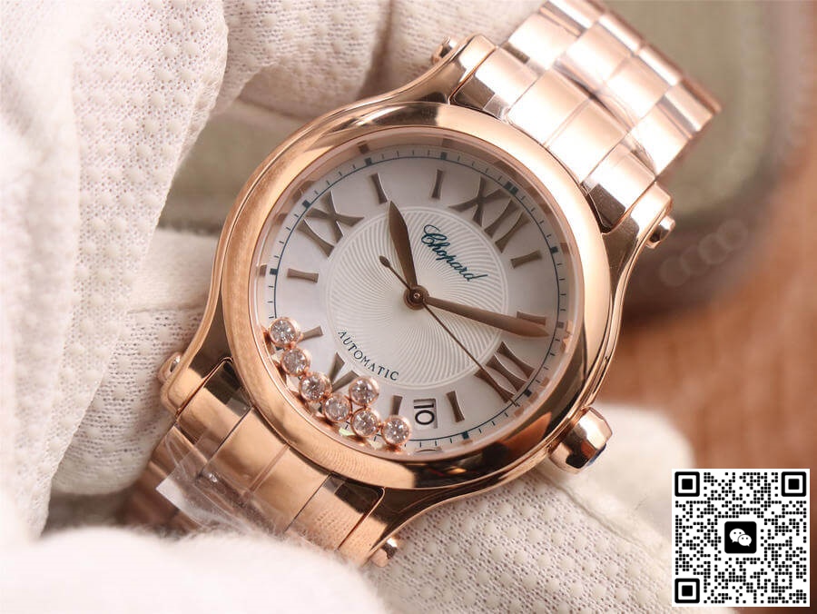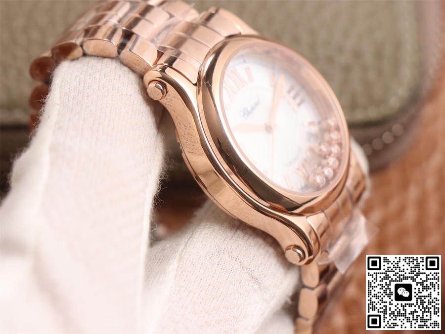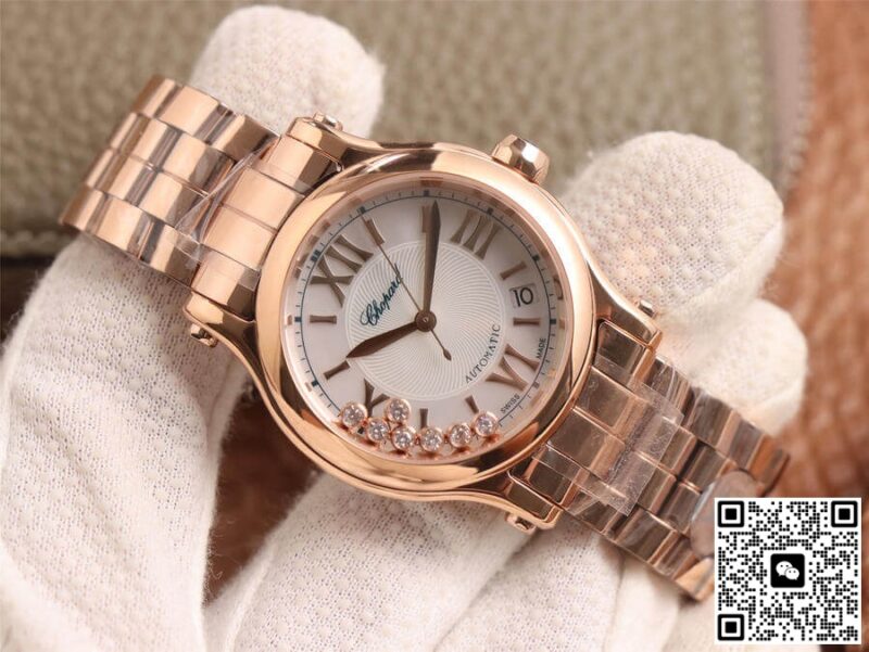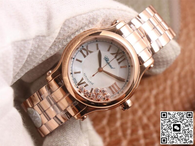 Chopard Happy Sport 274808-5002 YF Factory Rose Gold Strap JF Replica, almost indistinguishable from the original, is made with advanced technology and exquisite workmanship, whether it is the hour markers on the dial, the shape of the hands, or the The buckle design reproduces every detail of the genuine watch in detail. It is guaranteed to be consistent with the genuine watch in appearance and function. Whether it is the well-known Rolex, Patek Philippe, Audemars Piguet, Omega, etc., there are top replica versions to choose from. In addition to the appearance, the internal movement of the top replica watch is also exquisite. They feature high-precision and reliable Swiss movements that ensure the accurate operation of the watch. More importantly, the movements of these replica watches are finely adjusted and run-in by professional craftsmen, ensuring the accuracy and stability of time.