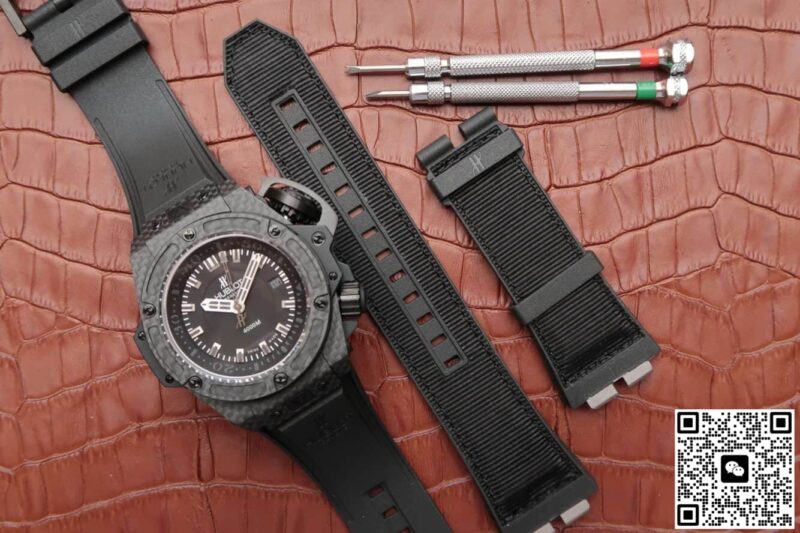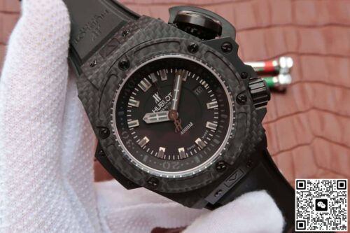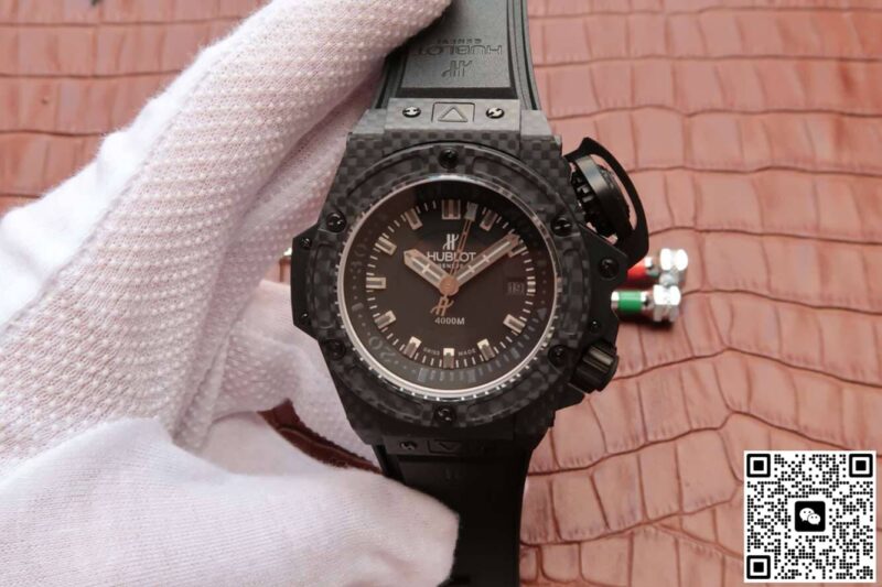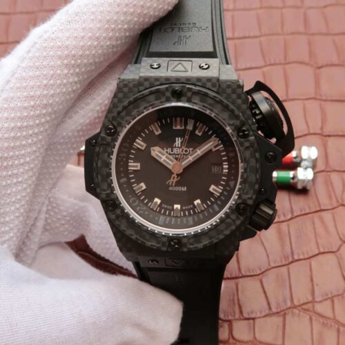 Hublot King Power Oceanographic 4000M 731.QX.1140.RX V6 Factory Black Carbon Fiber JF Replica, almost indistinguishable from the original, is made with advanced technology and exquisite workmanship, whether it is the hour markers on the dial, the shape of the hands, or the The buckle design reproduces every detail of the genuine watch in detail. It is guaranteed to be consistent with the genuine watch in appearance and function. Whether it is the well-known Rolex, Patek Philippe, Audemars Piguet, Omega, etc., there are top replica versions to choose from. In addition to the appearance, the internal movement of the top replica watch is also exquisite. They feature high-precision and reliable Swiss movements that ensure the accurate operation of the watch. More importantly, the movements of these replica watches are finely adjusted and run-in by professional craftsmen, ensuring the accuracy and stability of time.