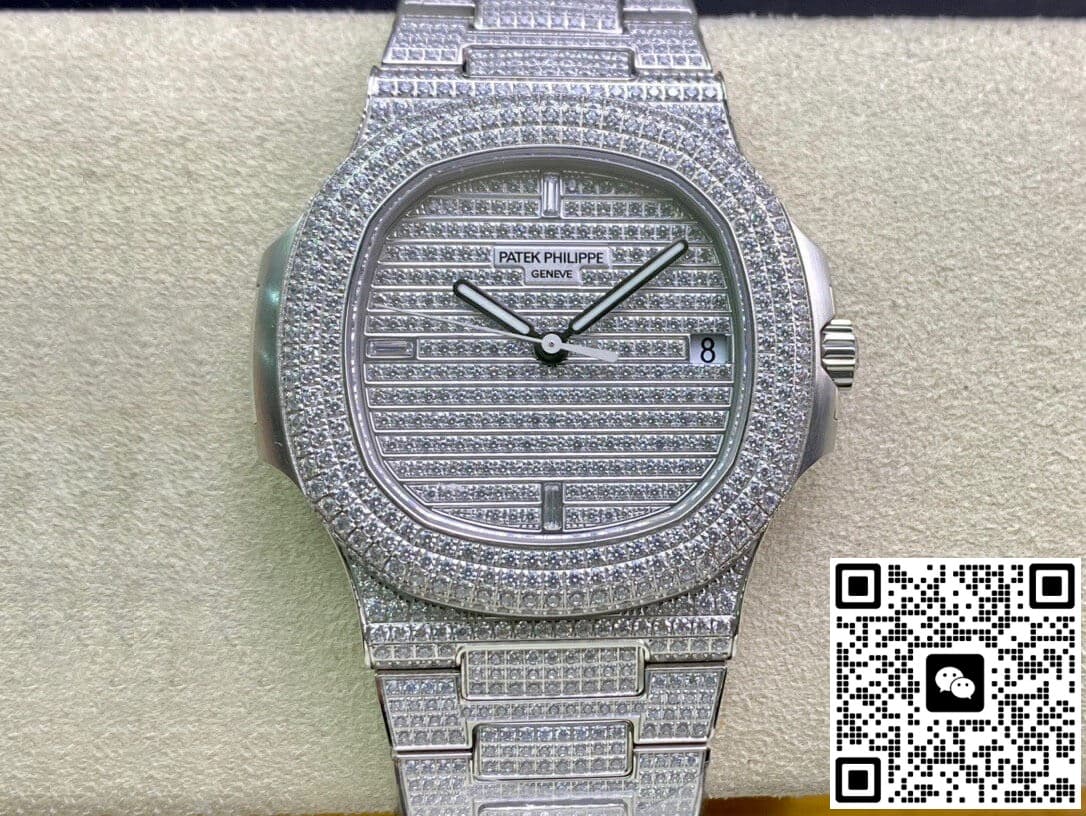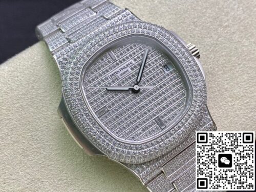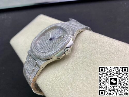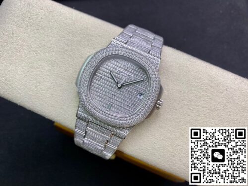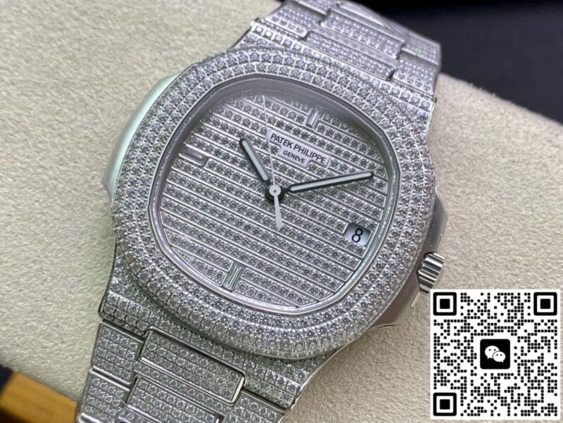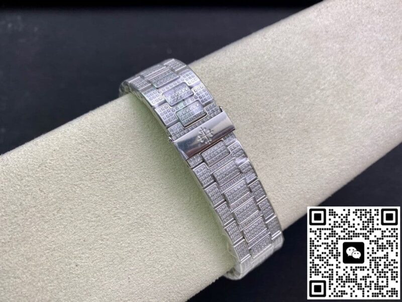 Patek Philippe Nautilus 5719/10G-010 PPF Factory V4 Silver Diamond JF Replica, almost indistinguishable from the original, is made with advanced technology and exquisite workmanship, whether it is the hour markers on the dial, the shape of the hands, or the The buckle design reproduces every detail of the genuine watch in detail. It is guaranteed to be consistent with the genuine watch in appearance and function. Whether it is the well-known Rolex, Patek Philippe, Audemars Piguet, Omega, etc., there are top replica versions to choose from. In addition to the appearance, the internal movement of the top replica watch is also exquisite. They feature high-precision and reliable Swiss movements that ensure the accurate operation of the watch. More importantly, the movements of these replica watches are finely adjusted and run-in by professional craftsmen, ensuring the accuracy and stability of time.