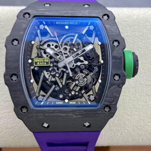 Richard Mille RM35-02 T+ Factory NTPT Carbon Fiber Purple Rubber Strap JF Replica, almost indistinguishable from the original, is made with advanced technology and exquisite workmanship, whether it is the hour markers on the dial, the shape of the hands, or the The buckle design reproduces every detail of the genuine watch in detail. It is guaranteed to be consistent with the genuine watch in appearance and function. Whether it is the well-known Rolex, Patek Philippe, Audemars Piguet, Omega, etc., there are top replica versions to choose from. In addition to the appearance, the internal movement of the top replica watch is also exquisite. They feature high-precision and reliable Swiss movements that ensure the accurate operation of the watch. More importantly, the movements of these replica watches are finely adjusted and run-in by professional craftsmen, ensuring the accuracy and stability of time.