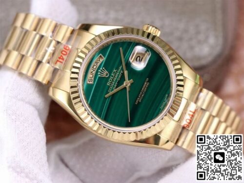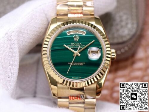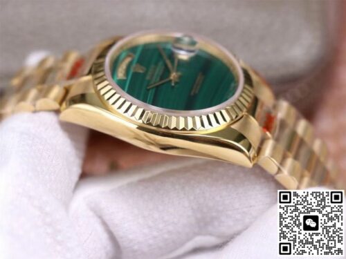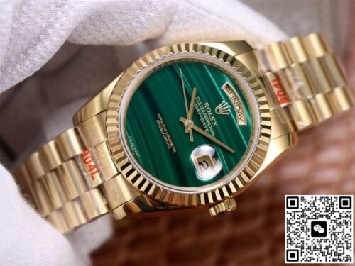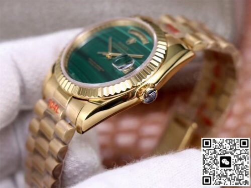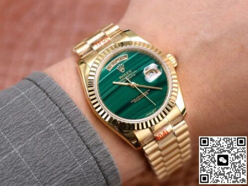 Replica watches are a product of the normal market economy and a luxury with high quality and low price. It was born to satisfy everyone’s pursuit of high quality and low price, and to bring people the quality and charm of genuine watches. If you are looking for an affordable and high quality replica watch, then this Rolex Day Date President 18238 Malachite Green Dial JF Replica Watches is a very good choice, almost the same as the genuine watch There is no difference, not only beautiful in appearance, but also excellent in performance. Whether it is fashion pursuit or business needs, it is a wise choice.