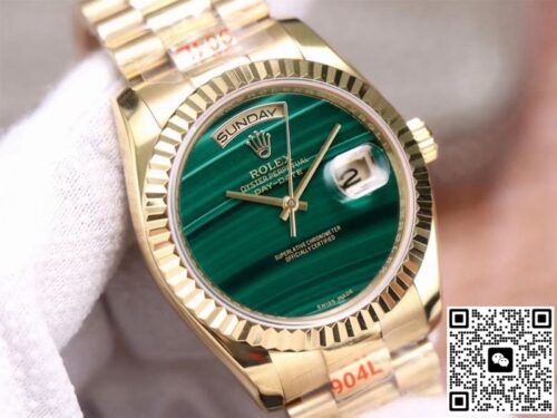 Rolex Day Date President 18238 Malachite Green Dial JF Replica, almost indistinguishable from the original, is made with advanced technology and exquisite workmanship, whether it is the hour markers on the dial, the shape of the hands, or the The buckle design reproduces every detail of the genuine watch in detail. It is guaranteed to be consistent with the genuine watch in appearance and function. Whether it is the well-known Rolex, Patek Philippe, Audemars Piguet, Omega, etc., there are top replica versions to choose from. In addition to the appearance, the internal movement of the top replica watch is also exquisite. They feature high-precision and reliable Swiss movements that ensure the accurate operation of the watch. More importantly, the movements of these replica watches are finely adjusted and run-in by professional craftsmen, ensuring the accuracy and stability of time.