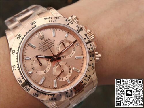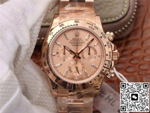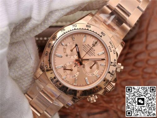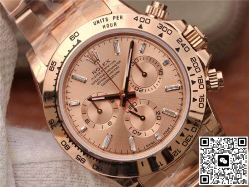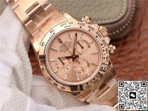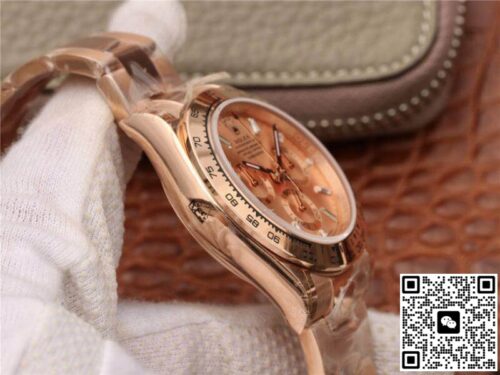 Rolex Daytona Cosmograph 116508 JH Factory Rose Gold Dial JF Replica, almost indistinguishable from the original, is made with advanced technology and exquisite workmanship, whether it is the hour markers on the dial, the shape of the hands, or the The buckle design reproduces every detail of the genuine watch in detail. It is guaranteed to be consistent with the genuine watch in appearance and function. Whether it is the well-known Rolex, Patek Philippe, Audemars Piguet, Omega, etc., there are top replica versions to choose from. In addition to the appearance, the internal movement of the top replica watch is also exquisite. They feature high-precision and reliable Swiss movements that ensure the accurate operation of the watch. More importantly, the movements of these replica watches are finely adjusted and run-in by professional craftsmen, ensuring the accuracy and stability of time.