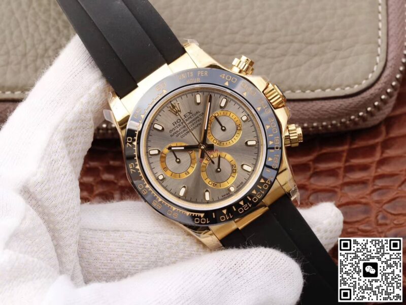 Rolex Daytona Cosmograph 116518LN JH Factory Black Rubber Strap JF Replica, almost indistinguishable from the original, is made with advanced technology and exquisite workmanship, whether it is the hour markers on the dial, the shape of the hands, or the The buckle design reproduces every detail of the genuine watch in detail. It is guaranteed to be consistent with the genuine watch in appearance and function. Whether it is the well-known Rolex, Patek Philippe, Audemars Piguet, Omega, etc., there are top replica versions to choose from. In addition to the appearance, the internal movement of the top replica watch is also exquisite. They feature high-precision and reliable Swiss movements that ensure the accurate operation of the watch. More importantly, the movements of these replica watches are finely adjusted and run-in by professional craftsmen, ensuring the accuracy and stability of time.