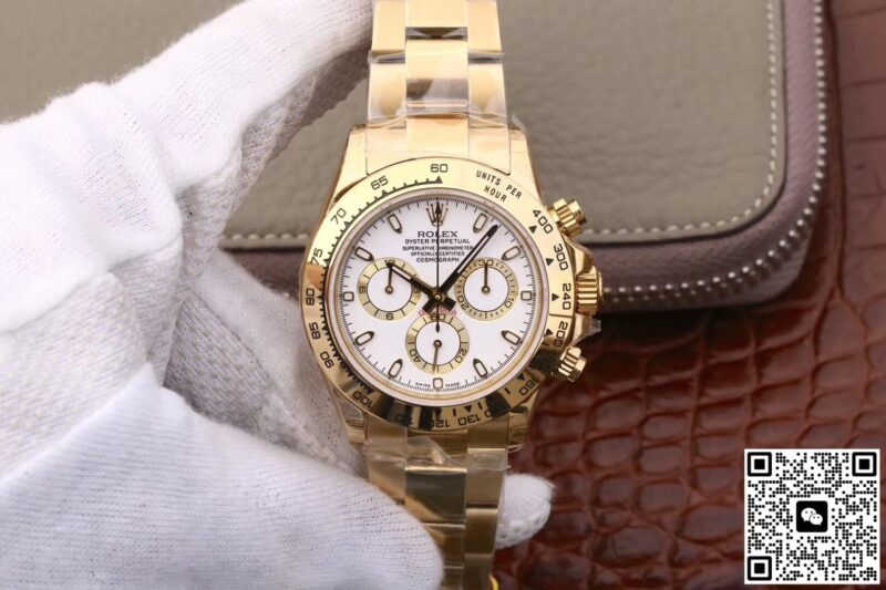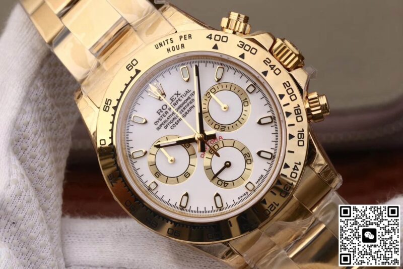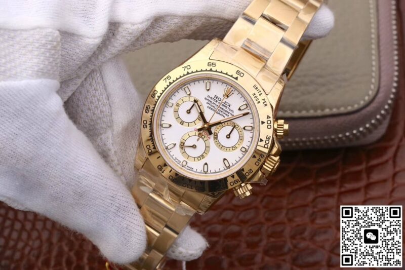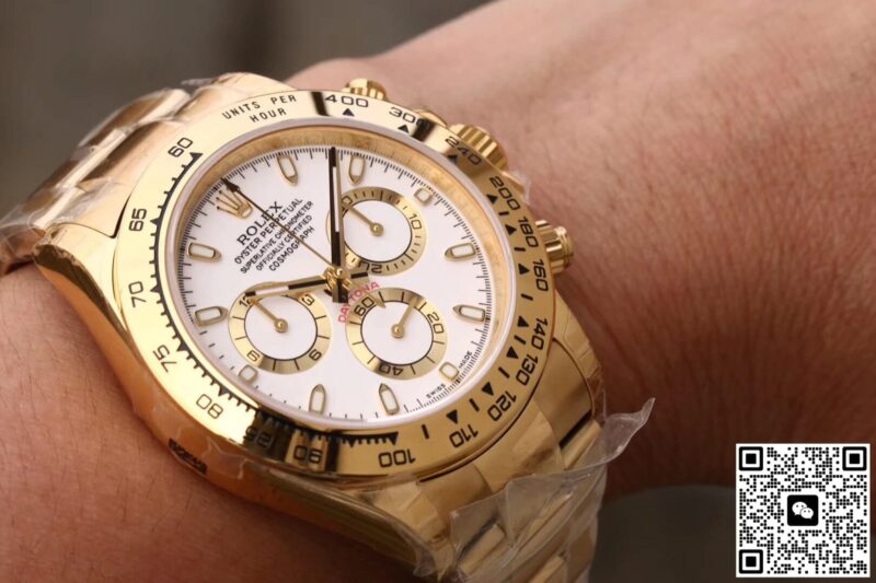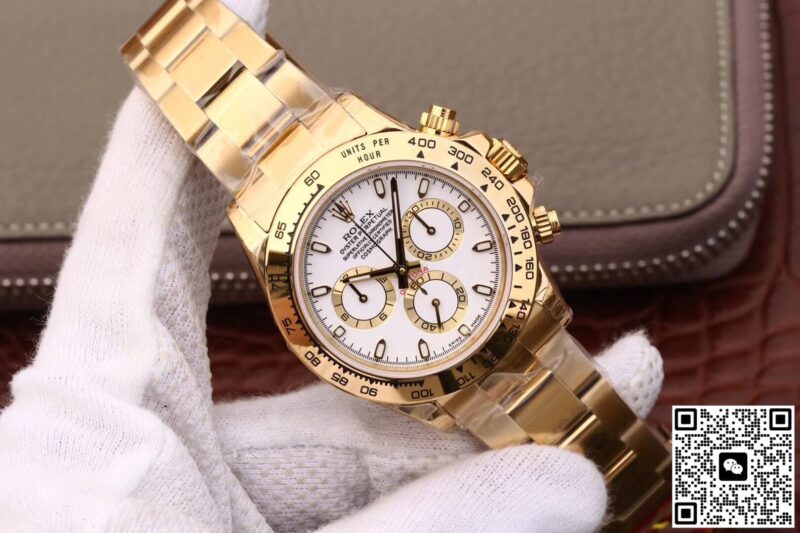 Rolex Daytona Cosmograph M116508-0001 JH Factory Gold Case JF Replica, almost indistinguishable from the original, is made with advanced technology and exquisite workmanship, whether it is the hour markers on the dial, the shape of the hands, or the The buckle design reproduces every detail of the genuine watch in detail. It is guaranteed to be consistent with the genuine watch in appearance and function. Whether it is the well-known Rolex, Patek Philippe, Audemars Piguet, Omega, etc., there are top replica versions to choose from. In addition to the appearance, the internal movement of the top replica watch is also exquisite. They feature high-precision and reliable Swiss movements that ensure the accurate operation of the watch. More importantly, the movements of these replica watches are finely adjusted and run-in by professional craftsmen, ensuring the accuracy and stability of time.