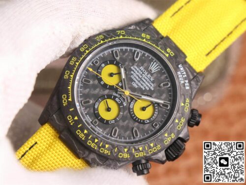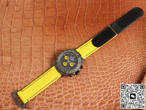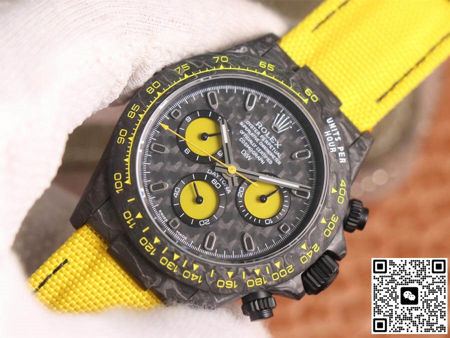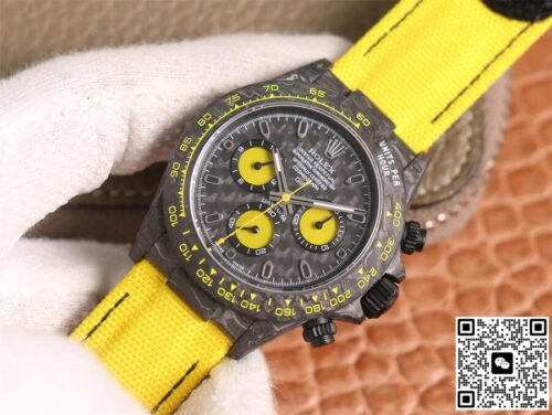 Rolex Daytona Diw Retrofit Version WWF Factory Yellow Strap JF Replica, almost indistinguishable from the original, is made with advanced technology and exquisite workmanship, whether it is the hour markers on the dial, the shape of the hands, or the The buckle design reproduces every detail of the genuine watch in detail. It is guaranteed to be consistent with the genuine watch in appearance and function. Whether it is the well-known Rolex, Patek Philippe, Audemars Piguet, Omega, etc., there are top replica versions to choose from. In addition to the appearance, the internal movement of the top replica watch is also exquisite. They feature high-precision and reliable Swiss movements that ensure the accurate operation of the watch. More importantly, the movements of these replica watches are finely adjusted and run-in by professional craftsmen, ensuring the accuracy and stability of time.
