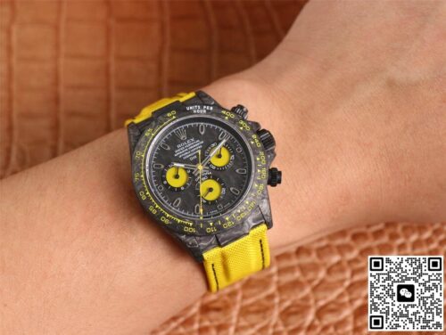 Replica watches are a product of the normal market economy and a luxury with high quality and low price. It was born to satisfy everyone’s pursuit of high quality and low price, and to bring people the quality and charm of genuine watches. If you are looking for an affordable and high quality replica watch, then this Rolex Daytona Diw Retrofit Version WWF Factory Yellow Strap JF Replica Watches is a very good choice, almost the same as the genuine watch There is no difference, not only beautiful in appearance, but also excellent in performance. Whether it is fashion pursuit or business needs, it is a wise choice.