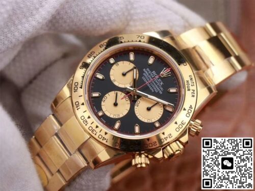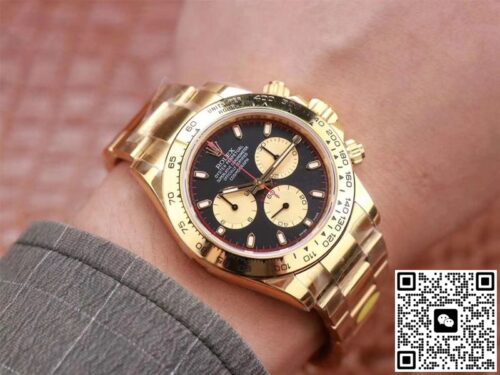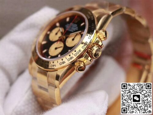 Rolex Daytona M116508-0009 Noob Factory Black Dial 4130 Movement JF Replica, almost indistinguishable from the original, is made with advanced technology and exquisite workmanship, whether it is the hour markers on the dial, the shape of the hands, or the The buckle design reproduces every detail of the genuine watch in detail. It is guaranteed to be consistent with the genuine watch in appearance and function. Whether it is the well-known Rolex, Patek Philippe, Audemars Piguet, Omega, etc., there are top replica versions to choose from. In addition to the appearance, the internal movement of the top replica watch is also exquisite. They feature high-precision and reliable Swiss movements that ensure the accurate operation of the watch. More importantly, the movements of these replica watches are finely adjusted and run-in by professional craftsmen, ensuring the accuracy and stability of time.