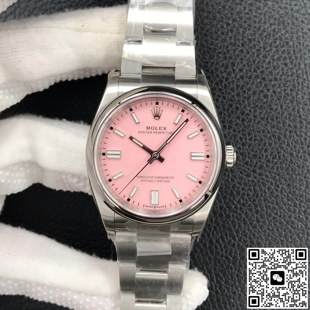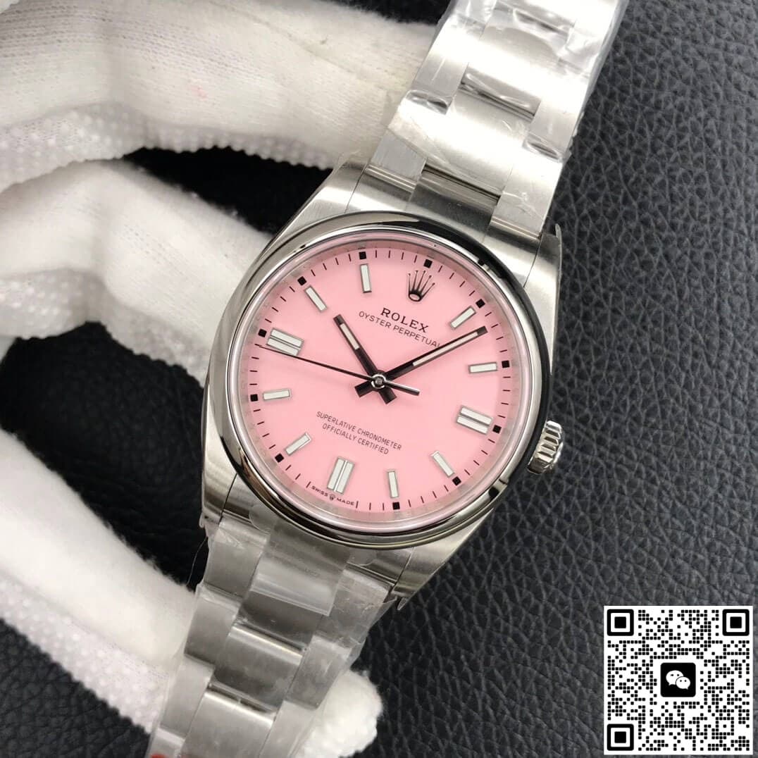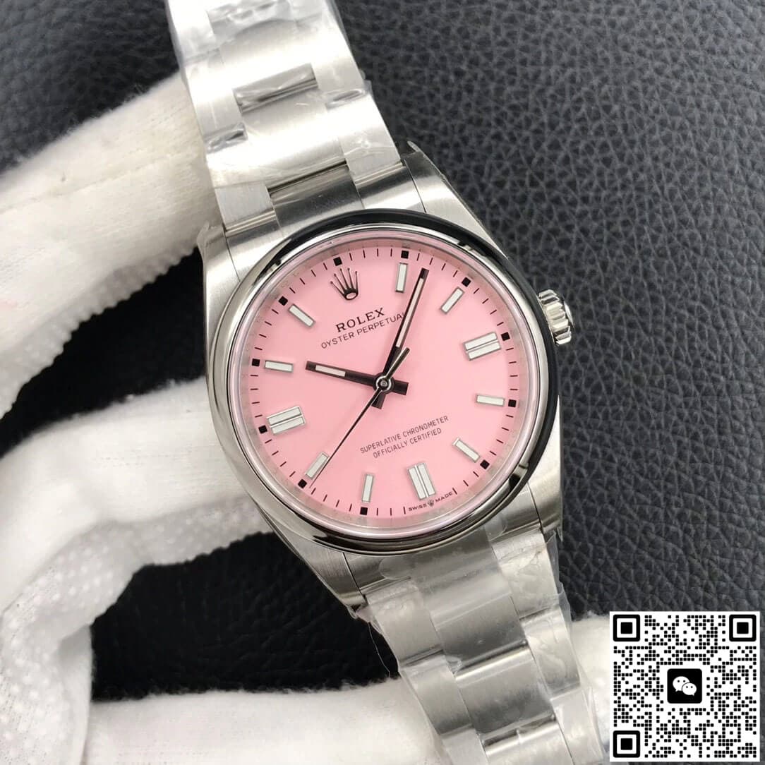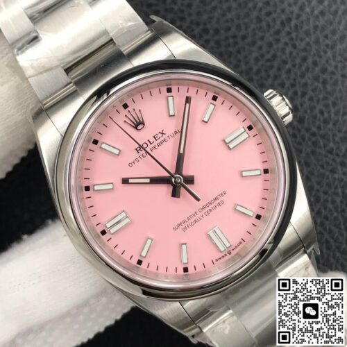 Rolex Oyster Perpetual M126000-0008 36MM EW Factory Pink Dial Stainless Steel JF Replica, almost indistinguishable from the original, is made with advanced technology and exquisite workmanship, whether it is the hour markers on the dial, the shape of the hands, or the The buckle design reproduces every detail of the genuine watch in detail. It is guaranteed to be consistent with the genuine watch in appearance and function. Whether it is the well-known Rolex, Patek Philippe, Audemars Piguet, Omega, etc., there are top replica versions to choose from. In addition to the appearance, the internal movement of the top replica watch is also exquisite. They feature high-precision and reliable Swiss movements that ensure the accurate operation of the watch. More importantly, the movements of these replica watches are finely adjusted and run-in by professional craftsmen, ensuring the accuracy and stability of time.